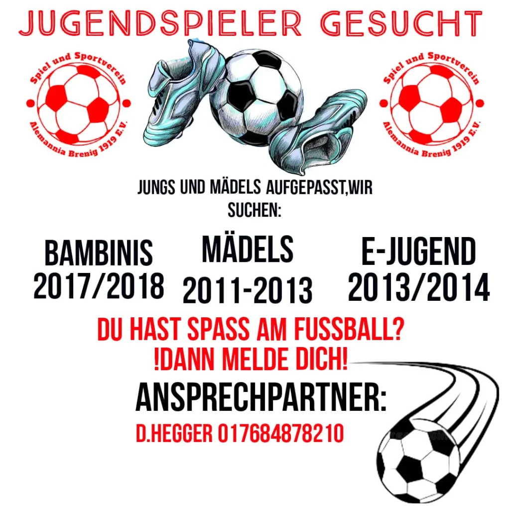 Jugend-Fussball sucht Verstärkung!This entry was posted in Aktuelles Allgemein Fußball on 24. Dezember 2023 by admin (updated 720 days ago) Wir suchen Spielerinnen und Spieler für: Bambinis: Jahrgänge 2017/2018E-Jugend: Jahrgänge 2013/2014Mädels: Jahrgänge 2011-2013 Ähnliche Beiträge